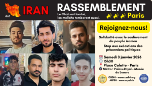 Appel à Rassemblement à Paris – Samedi 3 janvier 2026 – Soutenir le soulèvement du peuple iranien